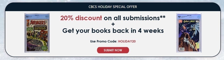 | Second question - does the discount apply to the WHOLE order, or just the "comics" part? In other words, do I tally shipping + the comics order and then apply the discount, or do I add up the comics order - then subtract 20% - then add the required shipping? Not sure how CBCS does it... |