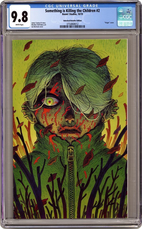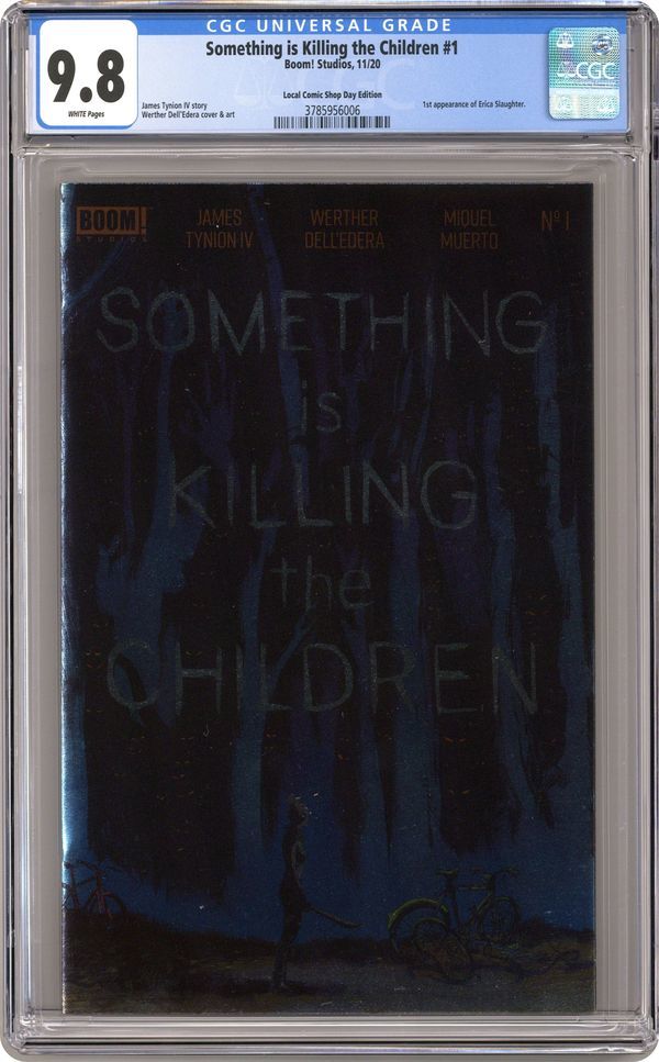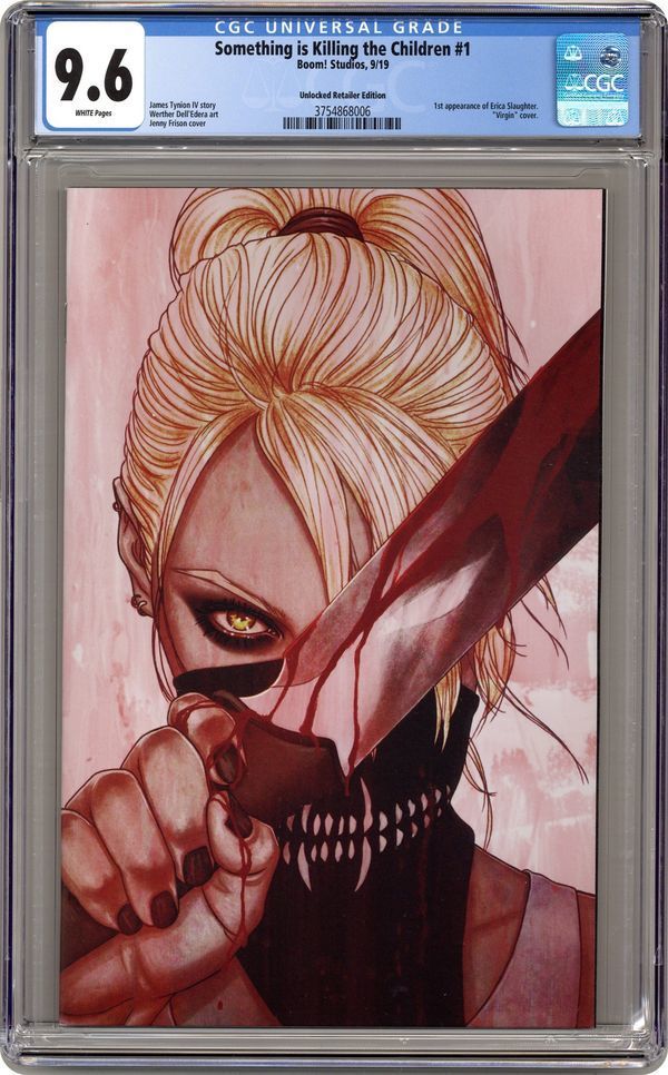 | Saturday night update! This Something Is Killing The Children comic, man it has a lot of fans out there. I've gotten three times as many "looks" on the CGC forum post as I usually get for an auction. And all because I posted it on a couple of SIKTC fan pages. Of course, the covers are, by and large, badass. Here are the current bids: Something Is Killing The Children #1 Frison Unlocked Retailer variant 9.6. Current bid: $127 Something Is Killing The Children #1 LCSD foil variant 9.8. Current bid: $46 Something Is Killing The Children #2 9.8. Current bid: $165 Something Is Killing The Children #2 Bertram Unlocked Retailer variant 9.8. Current bid: $73 Something Is Killing The Children #3 9.8. Current bid: $66 Something Is Killing The Children #4 9.8. Current bid: $76 Something Is Killing The Children #5 9.8. Current bid: $380 Something Is Killing The Children #6 9.8. Current bid: $65 ---------------------------------------------------------------------------- Also, here is another peak at next week's PRIME QUARTERLY AUCTION. There will be 44 (!) comics in this one. Here is just a taste of what is coming: Amazing Spider-Man #46 Dell'Otto variant cover 9.8. Current bid: -- Amazing Spider-Man #47 JeeHyung Lee variant cover 9.8. Current bid: -- Batman the Adventures Continue #2 Peach Momoko variant cover 9.8. Current bid: -- Detective Comics #1000 JeeHyung Lee variant cover 9.9 MINT. Current bid: -- Gwen Stacy #2 JeeHyung Lee variant cover 9.8. Current bid: -- Ice Cream Man #20 2nd print variant 9.8. Current bid: -- Immortal Hulk #19 Deodato variant 9.8. Current bid: -- Venom #27 Skan variant cover C 9.8. Current bid: -- Check them out! ![]() ![]() ![]() ![]() ![]() ![]() ![]() ![]() ![]() ![]() |
