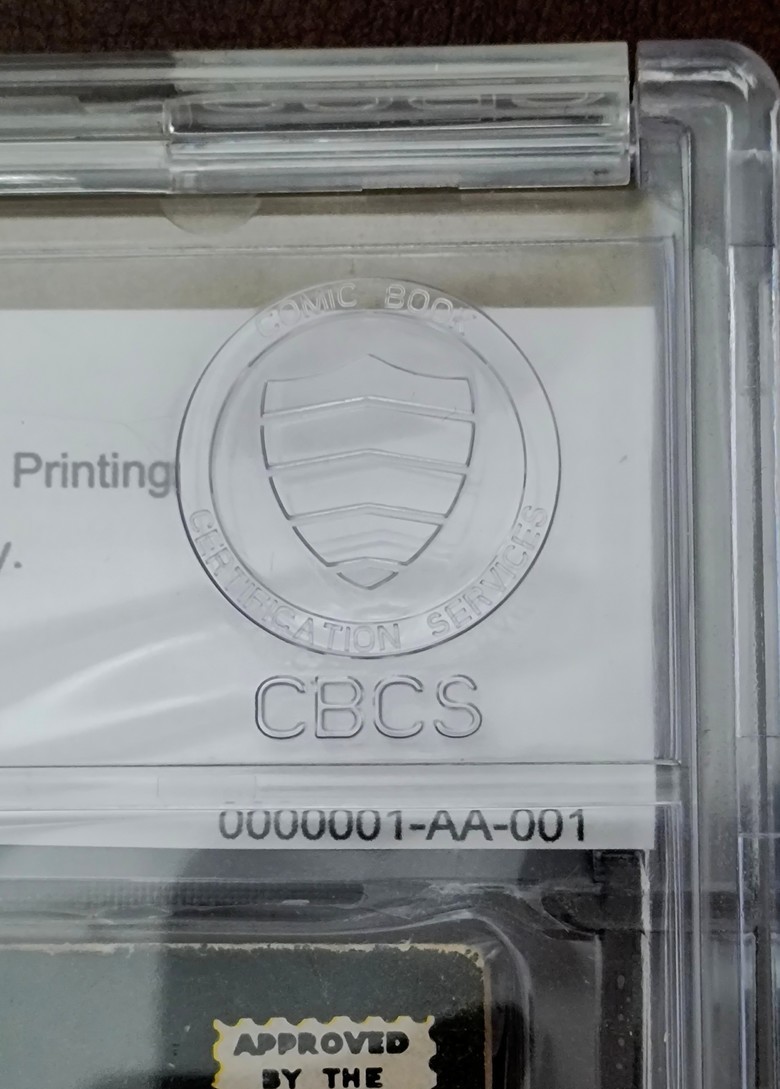 | This is killer! That CBCS engraved logo is next level cool! I'm sure there was a cost consideration at the time to not move forward with this but I would really hope that this could be put on the table for the next generation slab. The CBCS slab right now is perfect but adding that engravenent would be so super cool. I really love this!! ![]() Serial # is awesome too!! The very first CBCS slab!!! |