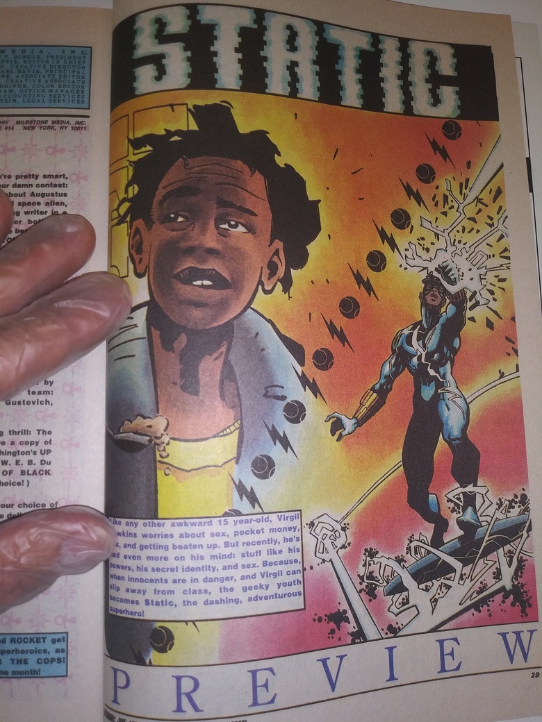 Everyone knows that Static's first appearance was next to Spawn and Omega Red in a centerfold poster in X-Men 1 (1991).