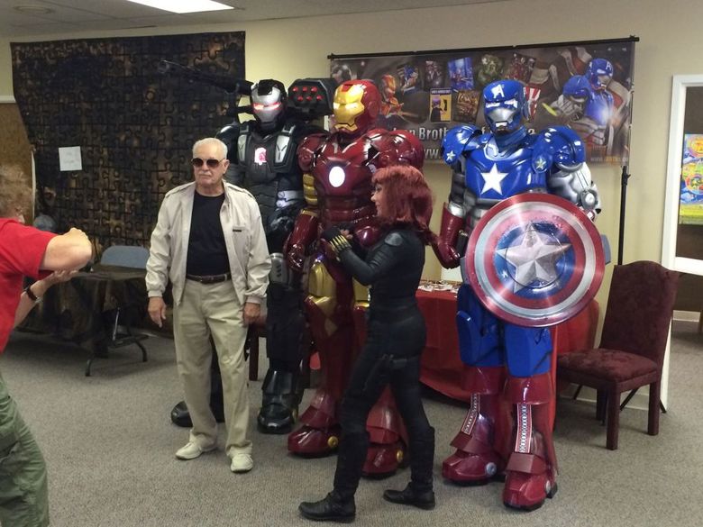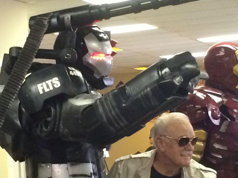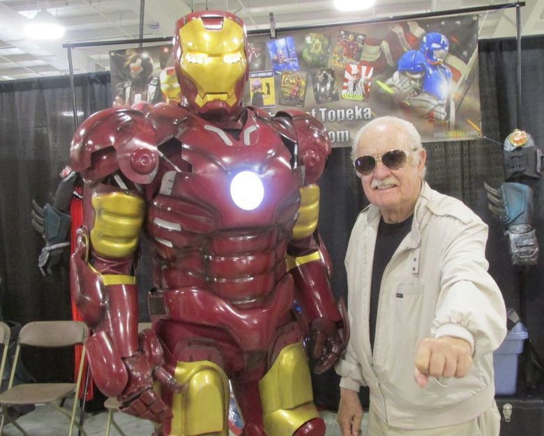 | Is the guy holding the Iron Man cosplaying as Stan Lee? | ||