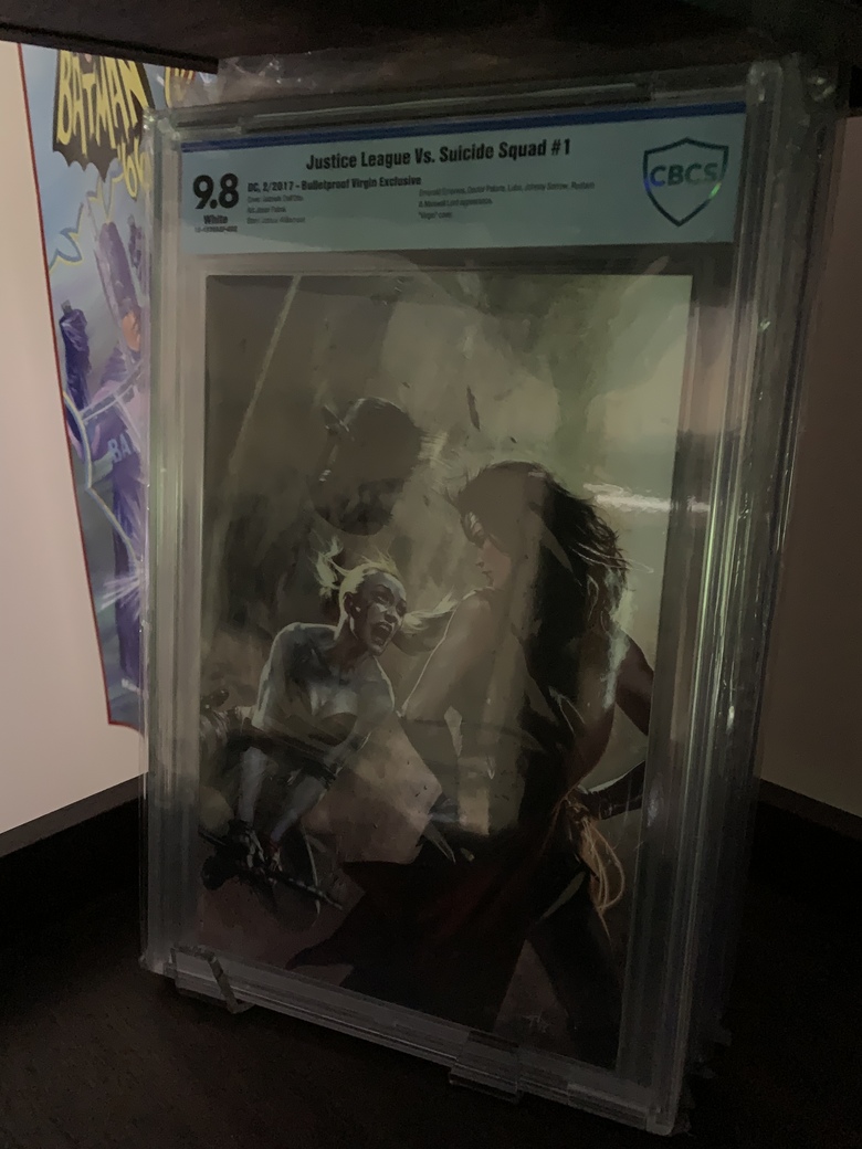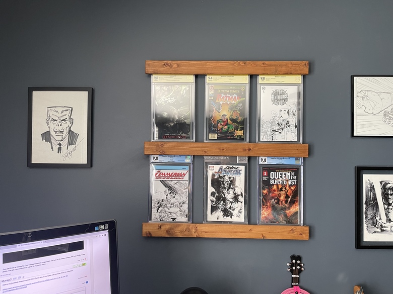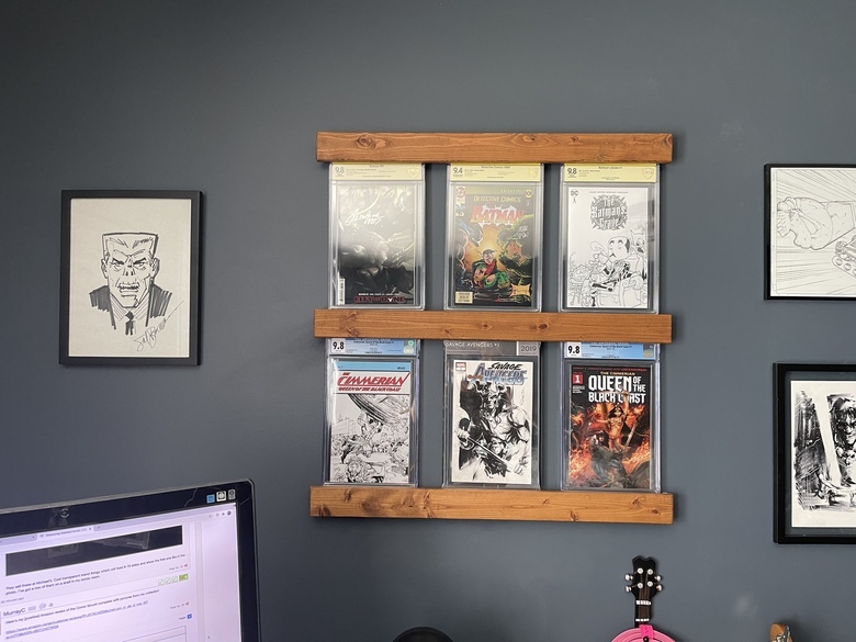 | To be honest, this is one of the biggest problems with slabbed books - they just dont look great for display purposes. They don’t respect the art and are focused on the other aspects of comic collecting. If I am Jerry Seinfeld or another big $ collector, I would either a) not slab or purchase slabs or (more likely) b)transact on a slabbed copy but then crack it immediately for proper framing. I love crafticomics framing but though I have a “slabbed frame” version of their product I really don’t know what to do with it except perhaps basement… Otherwise I have these metal picture frame holder stands that are subtle and can work on a shelved space… Btw my profile is a crafti frame with one of my (many) raw copies of watchmen |