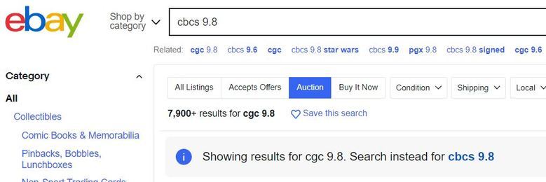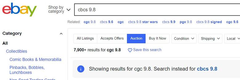 | You might want to continue to buy there, since your bidding competitors can't even find the CBCS stuff to bid on. Ebay - It's like they strive to screw up, and have a great record of doing so. |