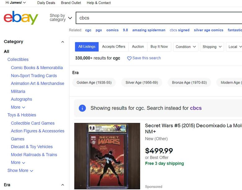 This is awful for anyone trying to sell CBCS books, especially at auction. I know you can click on "search for CBCS" instead, but I'd like to know why it's defaulting to CGC, even after typing cbcs in the search. Is this happening to everyone else? If so, is there anything that CBCS's legal department can do about it? ![]() ![]() |