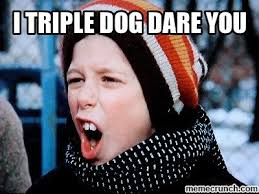 | @figment I already dared him on B&B. Triple Dog Dared; the mother of all dares! The dare to end all dares! there’s no turning back; the ship has sailed; it’s set in stone; it’s finished; the rooster has crowed; the fat lady sang; the sun has set; we’re mopping up; the line has been drawn; it’s settled; it’s put to bed; we’re packing it up even. |