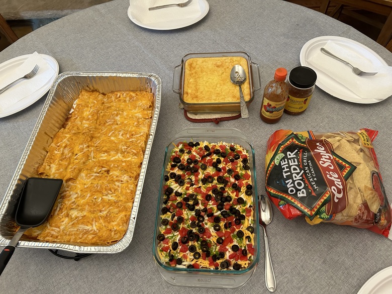 Taco tatertot casserole for the boy, firecracker shrimp and crab Rangoon for everyone else.![]() ![]() ![]() |