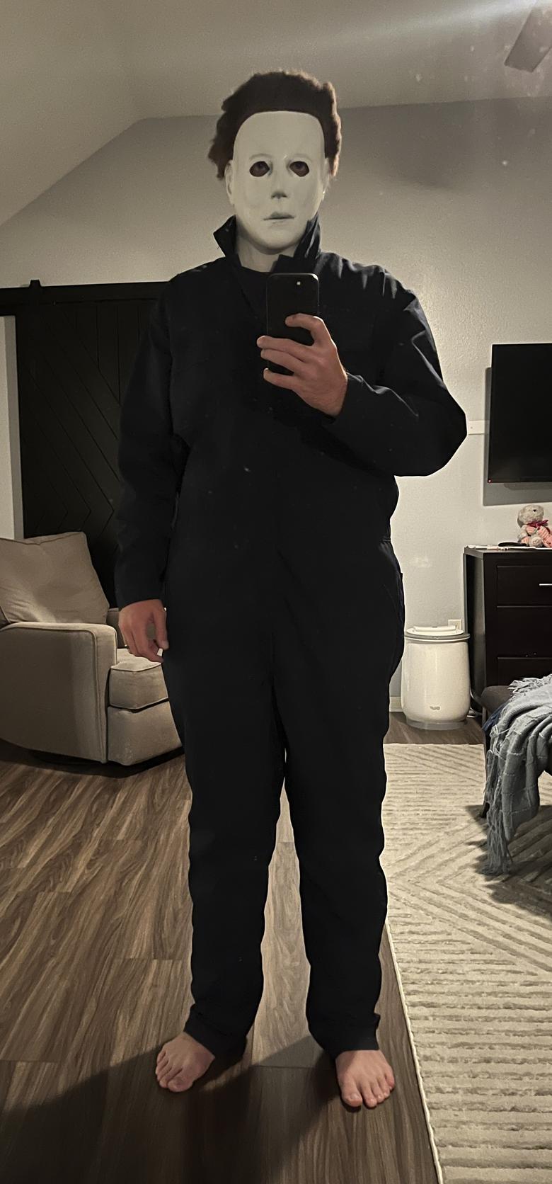 | Kids kept bugging me to dress up for Halloween this year. Im really impressed with Trick or Treat Studios Myers mask. Goes nicely with a Red Kap speed suit. Been working on letting the hair out so its a bit more Michael and a bit less clown. ![]() |