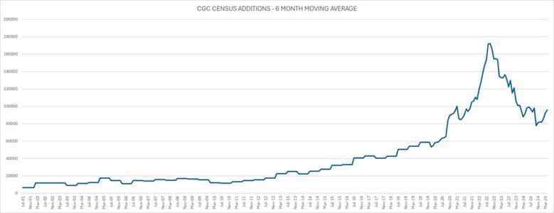 ..... lastly. And I can't remember where I got this chart from a few months ago. And I can't attest to it's accuracy. But if its accurate, this is not good for them (thru March '25). There may be several factors like downturn in this entire hobby. But I'm quite sure the CGC scandals have contributed below. The numbers say people are walking away from CGC submissions for some reason(s). ![]() |