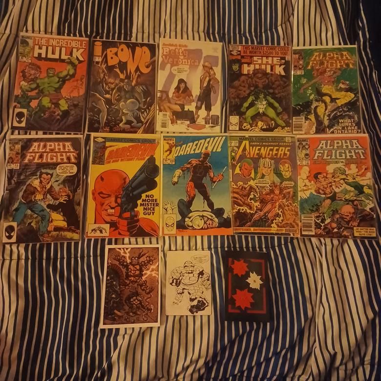 Here is my haul from the Livonia show Sunday. Tell me what you think. Unfortunately almost all books were not bagged or boarded. These ran me $5. each. There was an amazing amount to dig through. I had to wait several minutes before being able to get up to the boxes. The guy in front of me found a nice run of Daredevil books from around #15-40. All 10 and 12 cent covers were $10. each and 20 cents and higher were $5. each. My 3- 12 cent.books ran me $5. as they dropped the price after a few hours. ![]() ![]() ![]() |