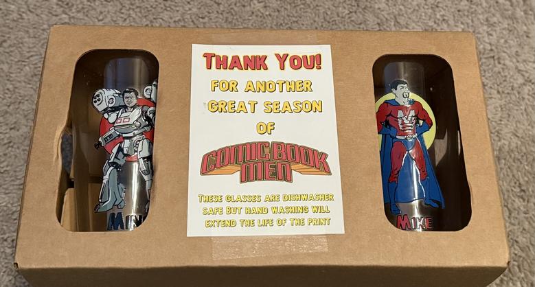 | I’m a huge fan of the show “Comic Book Men” that aired on AMC between 2012 and 2018. These tumblr glasses were given out to the cast & crew as a wrap gift at the end of season 2. I am psyched to add them to my collection. ![]() ![]() ![]() |