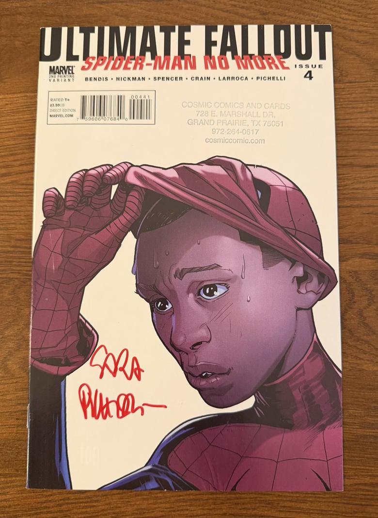 Sara Pichelli also was really cool, especially as she technically was done signing but went ahead and signed my book. Stephen Platt and Dan Panosian were also cool, and, as always, Jock is one of my favorites. He's not cheap for sigs anymore, but super nice and great to talk to. He seems to genuinely enjoy interacting with fans. Joe Quesada was nice, too. All in all, a really great experience.