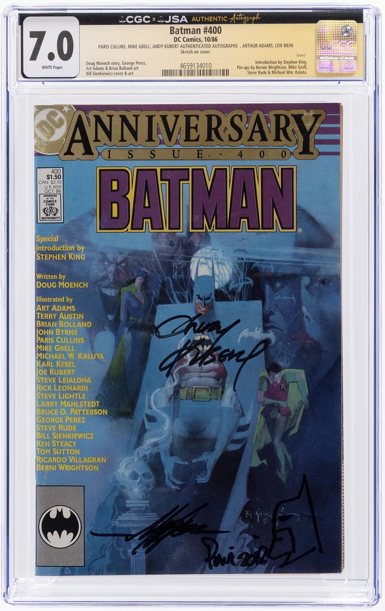 | Batman #400 CGC/JSA 7.0 Paris Cullins (FC + BM head), Mike Grell (FC), Andy Kubert (FC), Arthur Adams (p1), Len Wein (p1), George Pérez (p4), Bill Sienkiewicz (p8), Arthur Adams (p11), Steve Leiahola (p16) and Joe Kubert (p18) $399 ![]() |