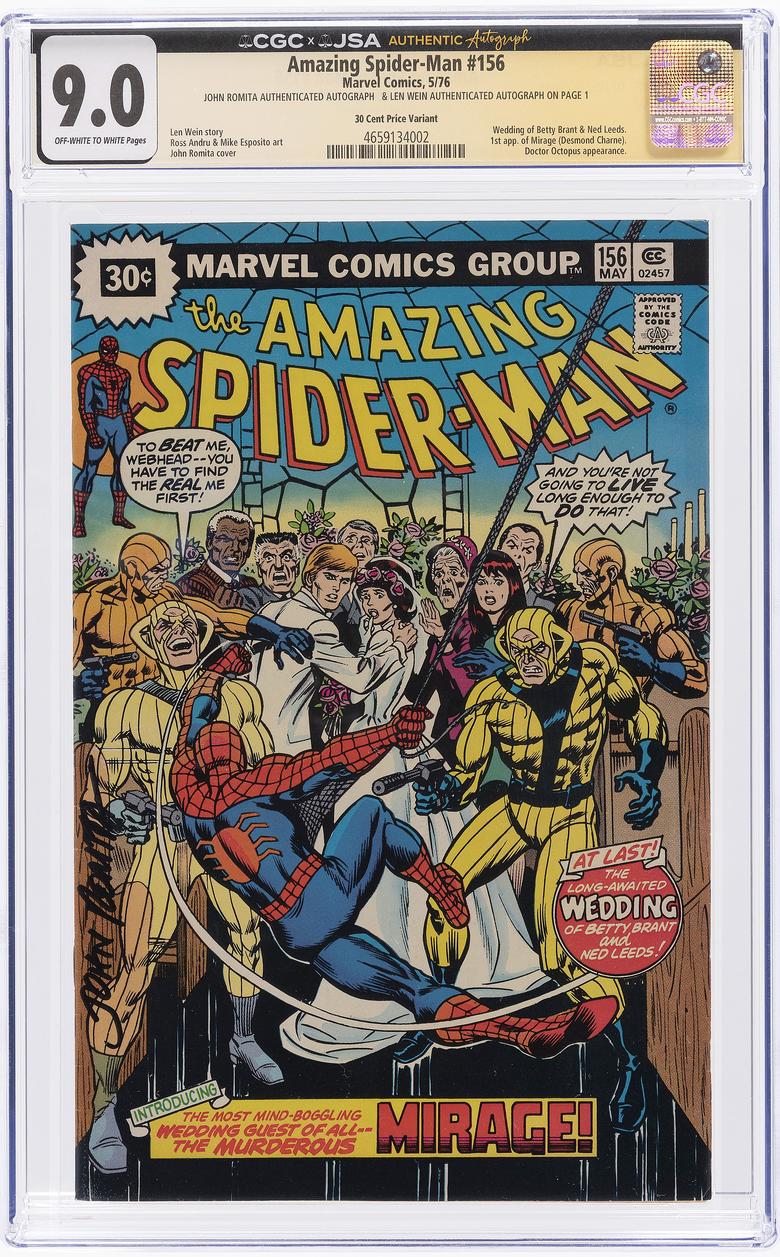 | Amazing Spider-Man #156 30c variant CGC/JSA 9.0 signed John Romita and Len Wein (page 1) $429 ![]() |
