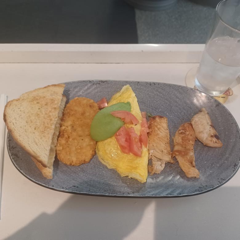 Cheese, tomato, and green pepper six-egg omelette.![]() |
