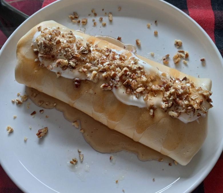 Quote:Originally Posted by Pre_CoderI was going to call it a pecan pancake, but I figured it was filled with something since it was rolled up. I thought it looked a little thick to be a crepe. |