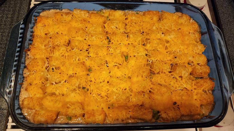 Another tater tot casserole. This one made with leftover steak and gravy, green peas, and mushrooms.![]() |