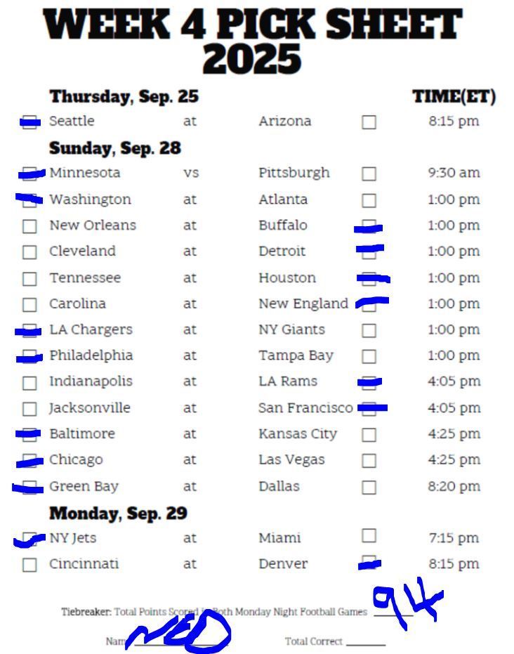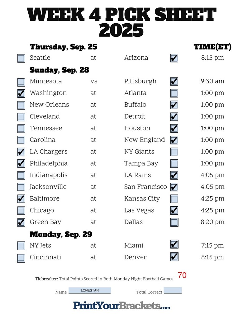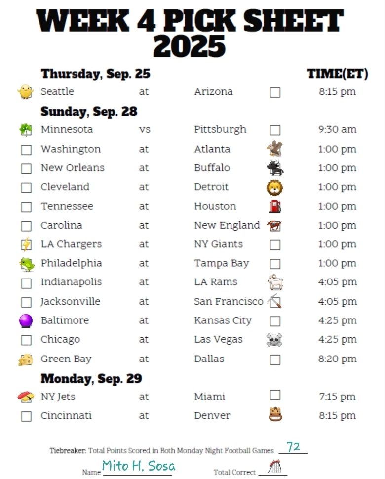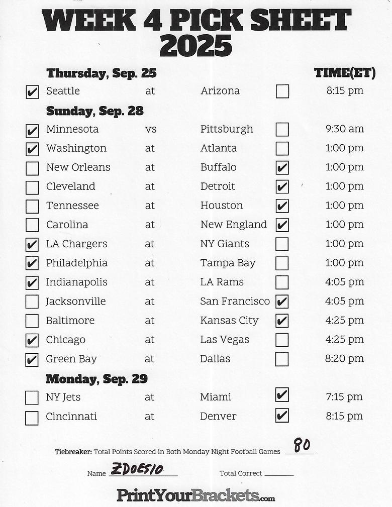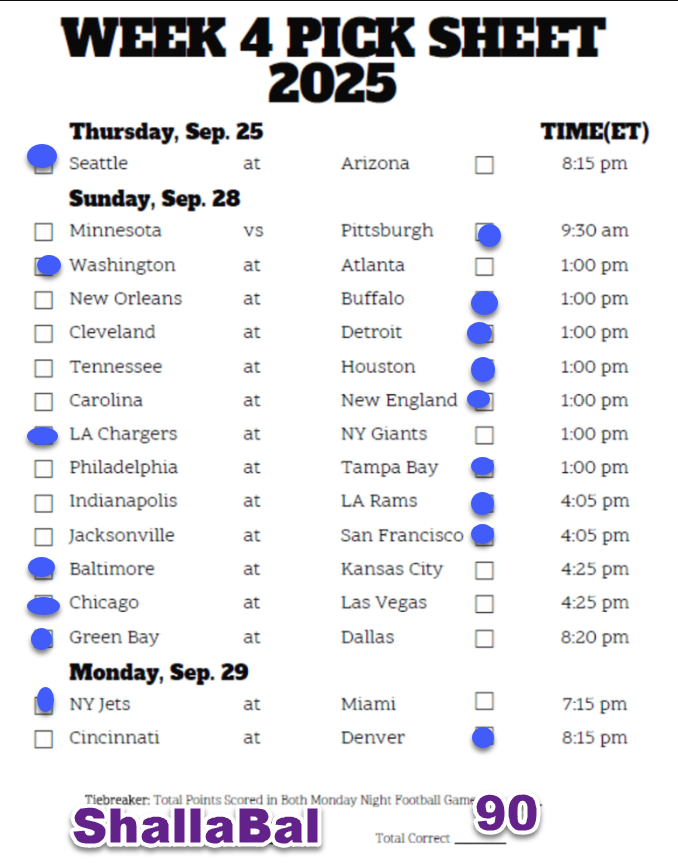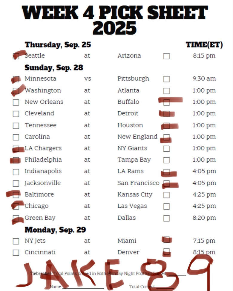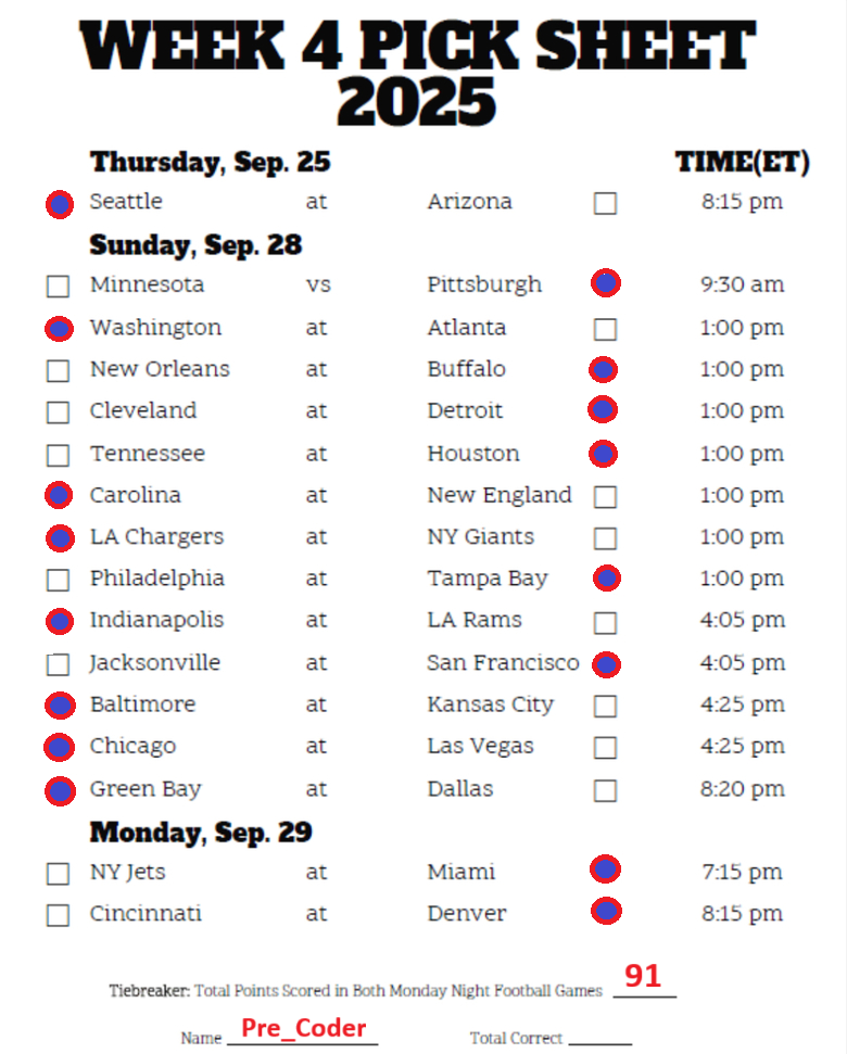 2025-2026 NFL Week 4 Picks and Discussion21992