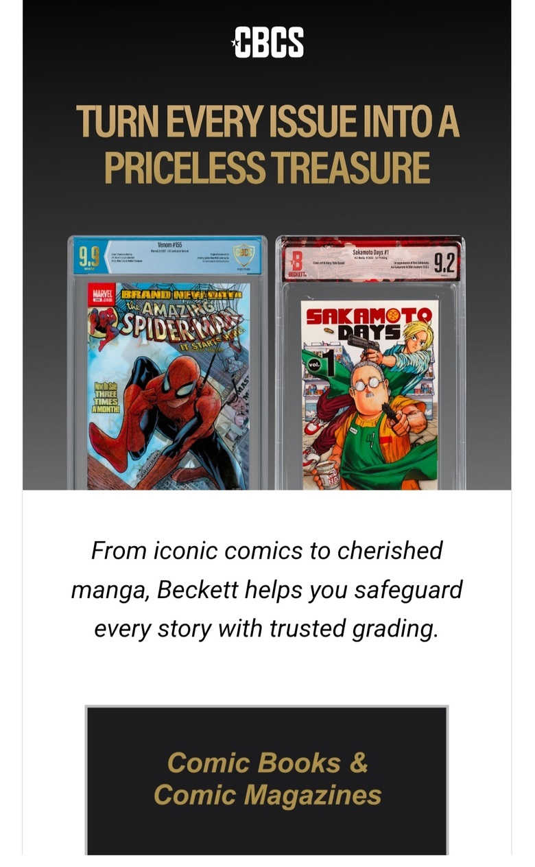 Quote:Originally Posted by xkonk Great news to hear, especially for fans attending Baltimore Comic Con this year that froze out CBCS for ShitGC exclusivity. |