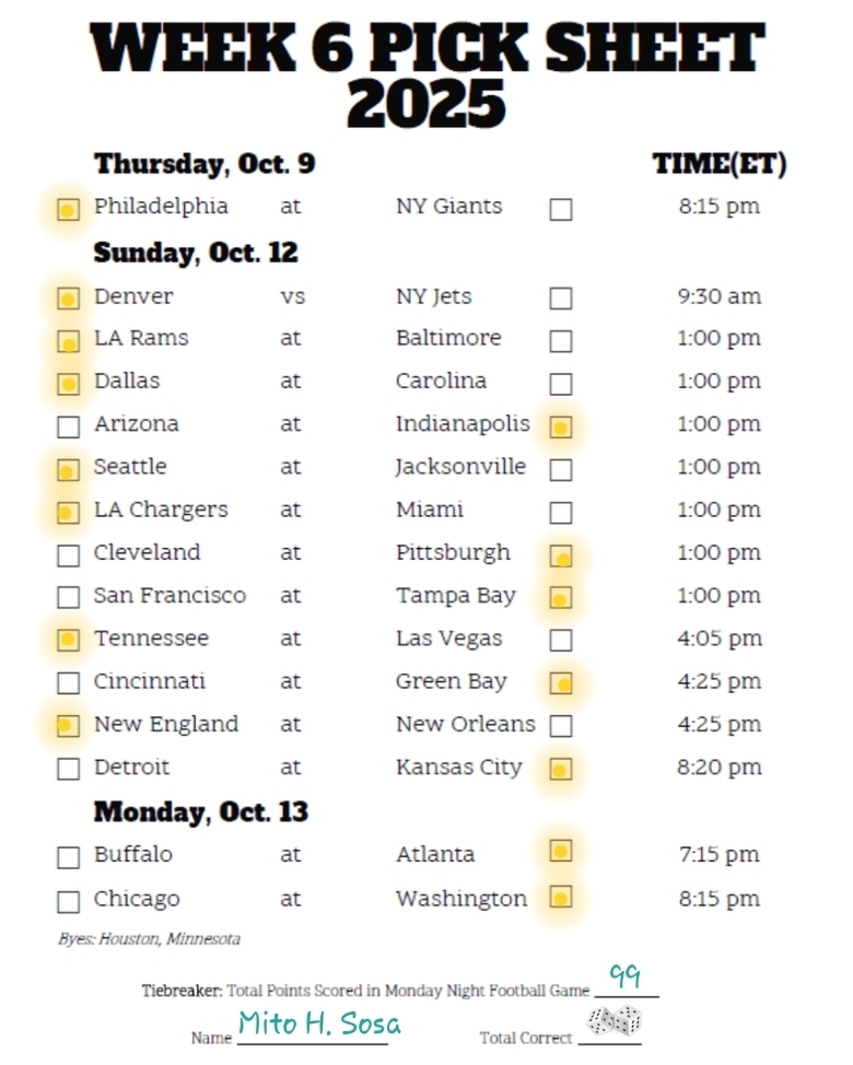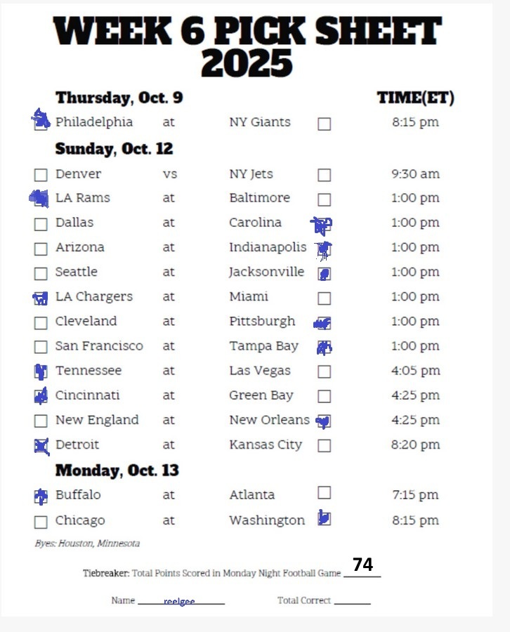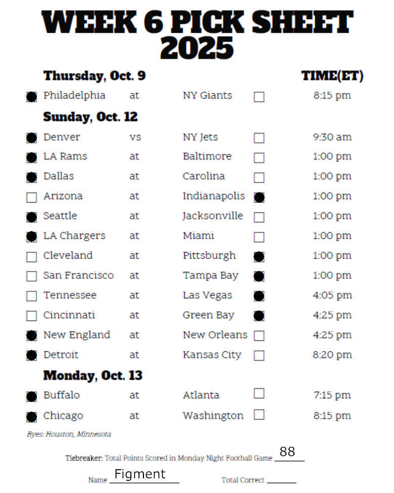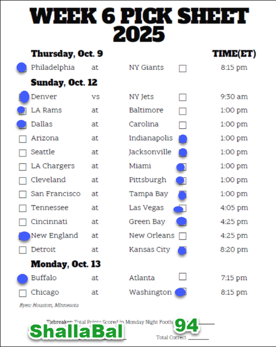 2025-2026 NFL Week 6 Picks and Discussion22012