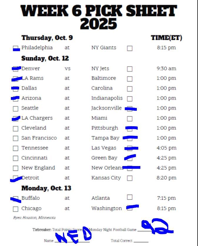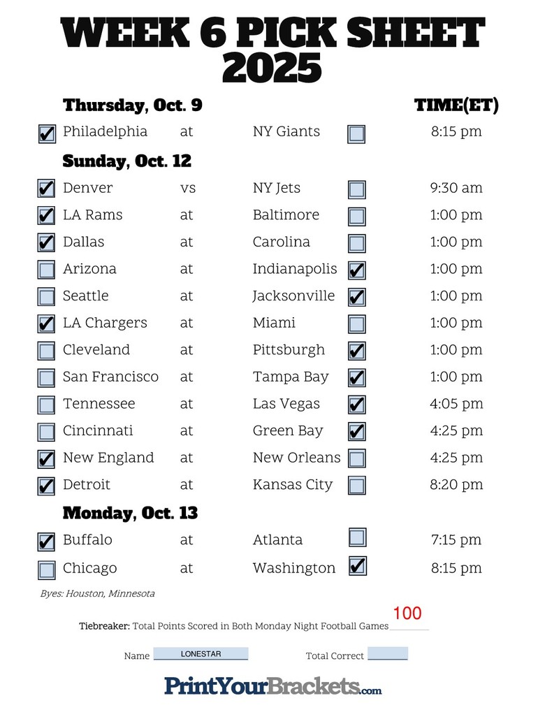 2025-2026 NFL Week 6 Picks and Discussion22012