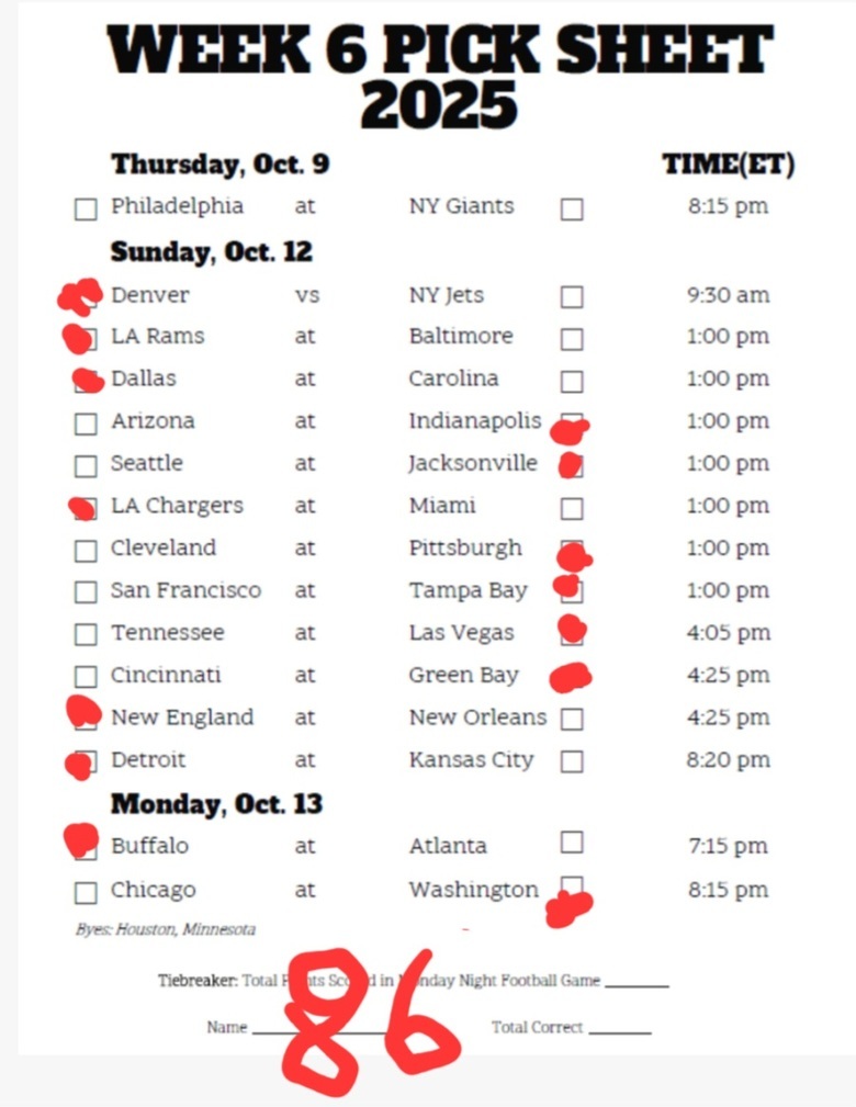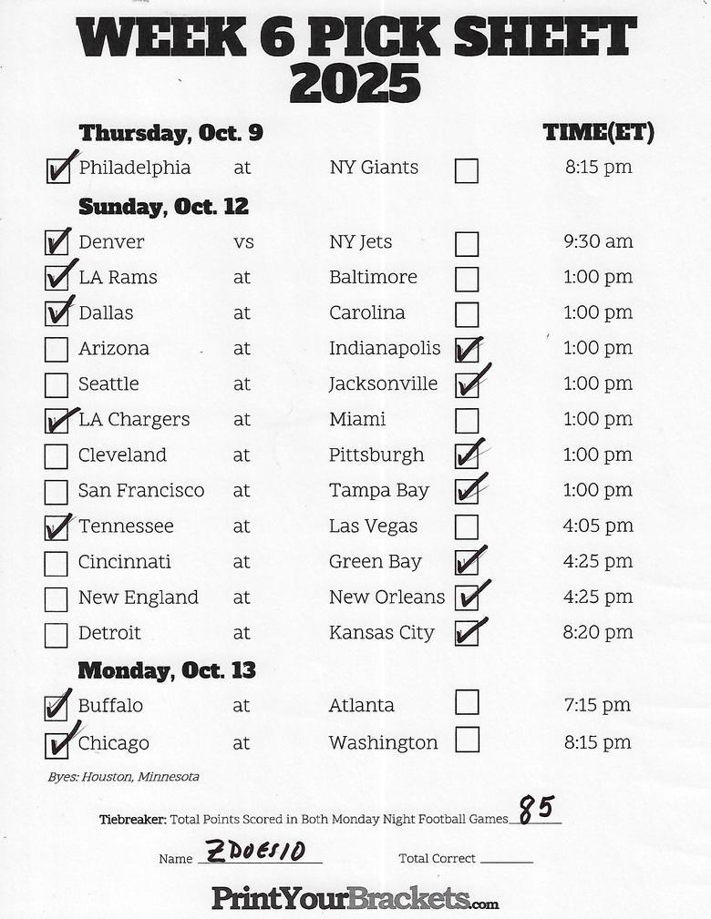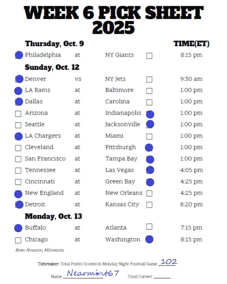 2025-2026 NFL Week 6 Picks and Discussion22012