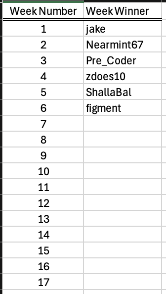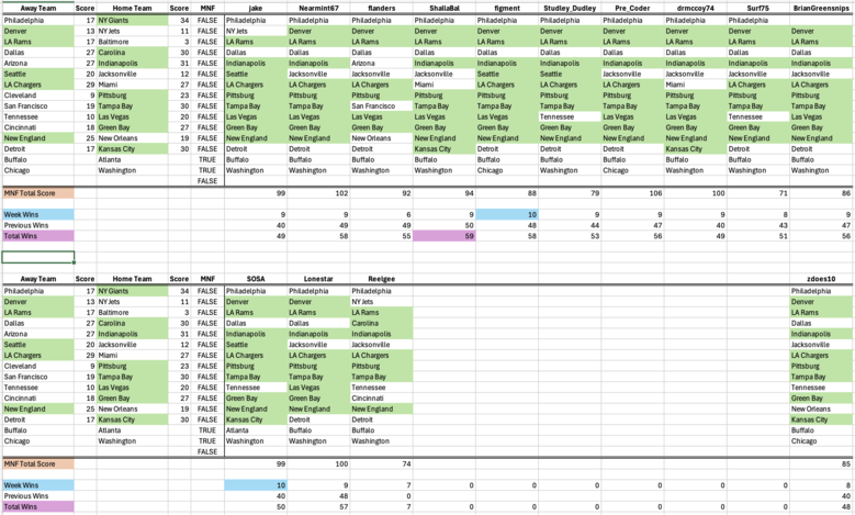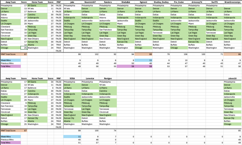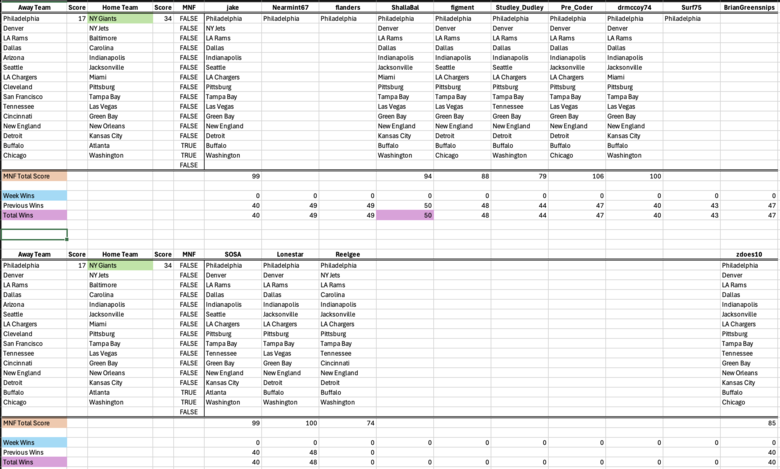 @BrianGreensnips and myself get closest to the actual MNF total score. I get the weekly win over the exiled Sosa by being closer to the MNF score. I also move into a tie for the overall with @ShallaBal going into Week 7. Hey, I'll take all the good week's I can get! ![]() |