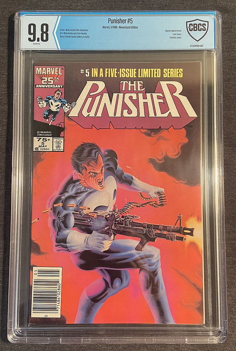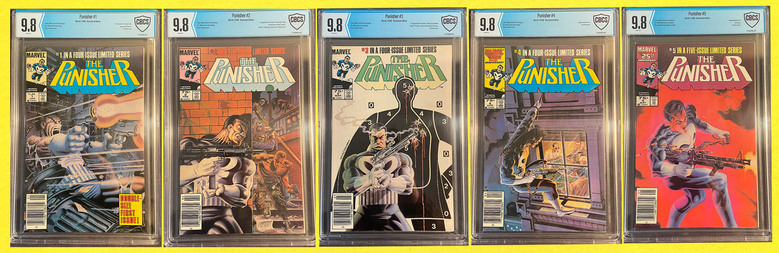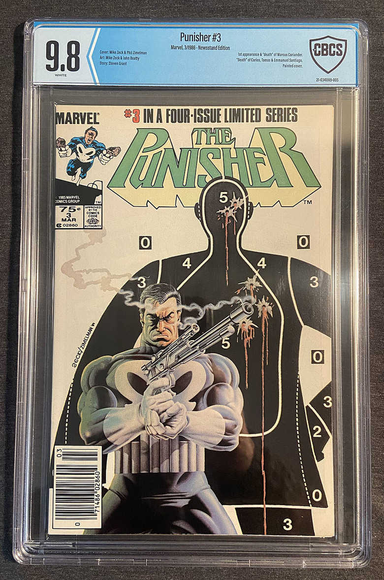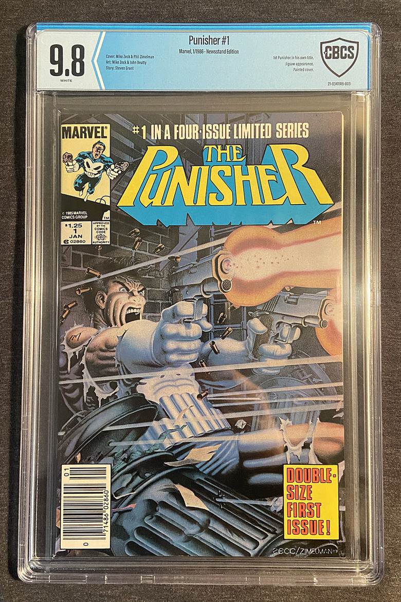 Quote:Originally Posted by DWeeB1967 Thanks for the kind words @DWeeB1967 I know many would argue the point, but anything less than a perfect cover wrap is not a 9.8 to me. I was lucky enough to have been able to cherry Pick these books from the stands Way back in the day. They are one owner books that hold a special meaning for me. There have been many renditions of the Punisher over the years, but Mike Zeck's "Circle of Blood" has always best represented what the punisher should be to me. ![]() ![]() ![]() |