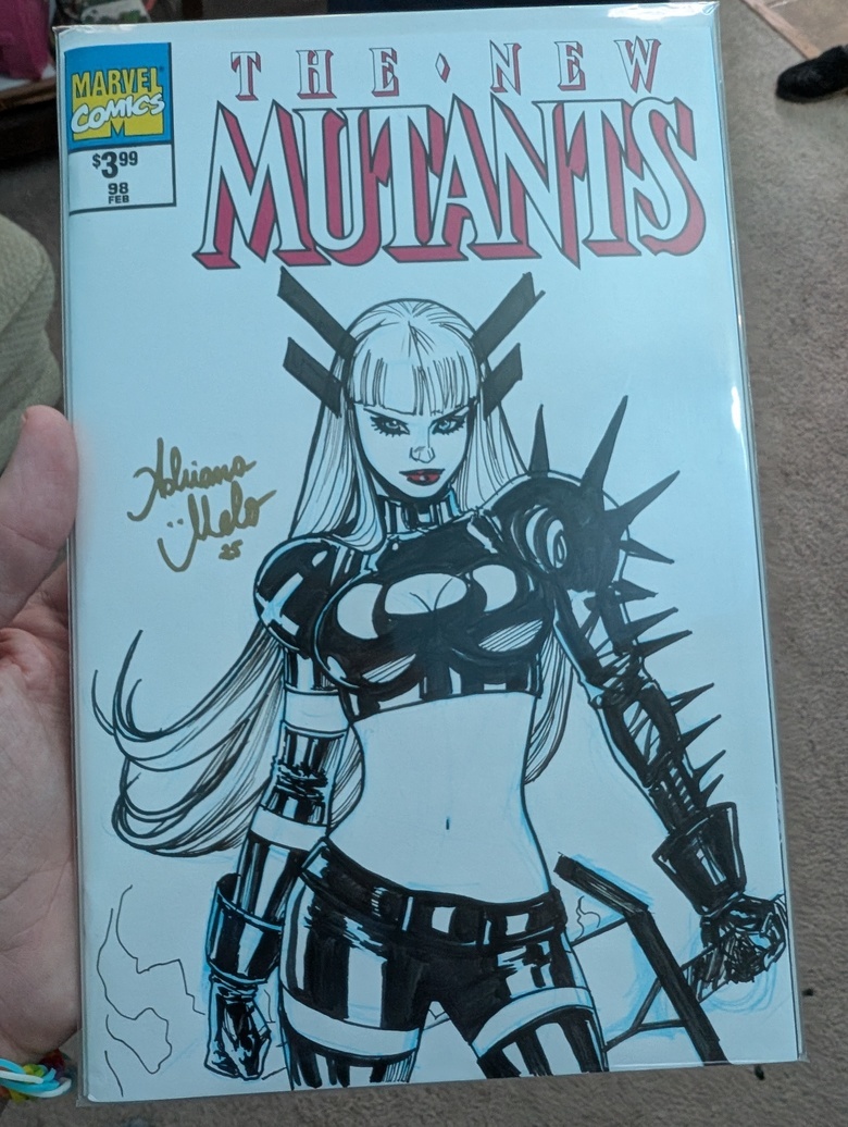 | Here are my goodies Signatures and a print from Josh Middleton. I didn't know he lives in Japan, was glad to see him. ![]() ![]() A little book of sketches and a Prof X from Bob McLeod ![]() ![]() Adam Kubert sigs. ![]() This lady and her sister were next to me in line for the five hours it took to get up to Chris Claremont. She was probably the nicest person I've met at a con and made the ordeal tolerable. Not pictured, the Claremont sigs because I got them on the first page. ![]() A Magik sketch by Adriana Melo ![]() Not pictured, some other odds and ends. |