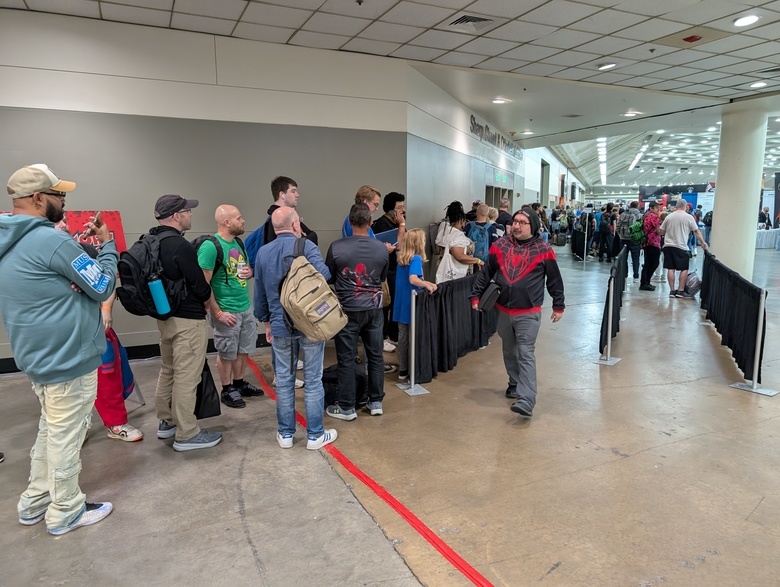 | @xkonk Looks about right. Yesterday they had just 1 combined line for Claremont, Alan Davis, and Adam Kubert, and it was slightly longer than this line right after opening. A volunteer came by asking if anyone was waiting for Alan Davis only, so I took the chance to get out of the line (I've met Claremont twice before already) and get a sketch and some sigs from Davis instead. I got the chance to meet just about every creator I was looking forward to yesterday, and may consider using Sunday to deal with the Simonson and Claremont lines before shopping for comics. | ||