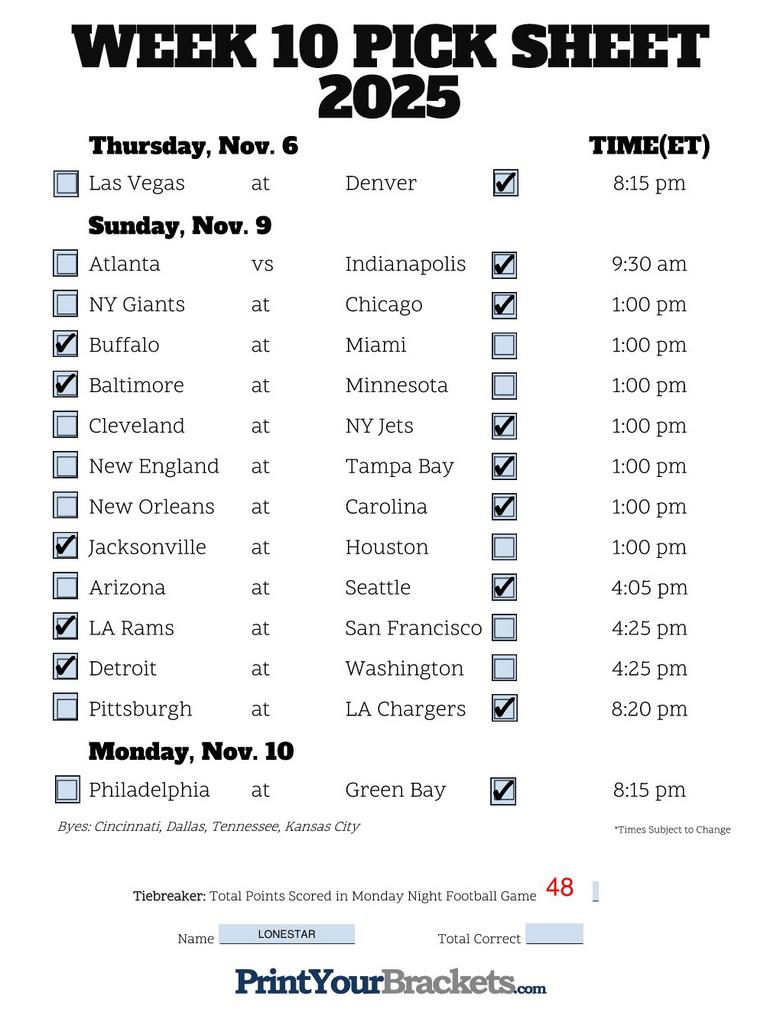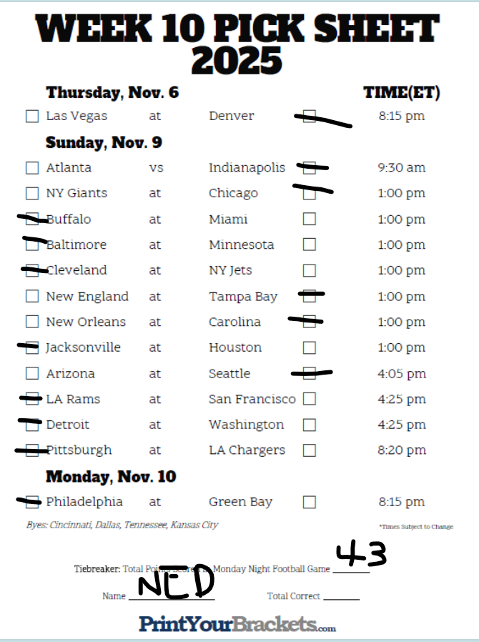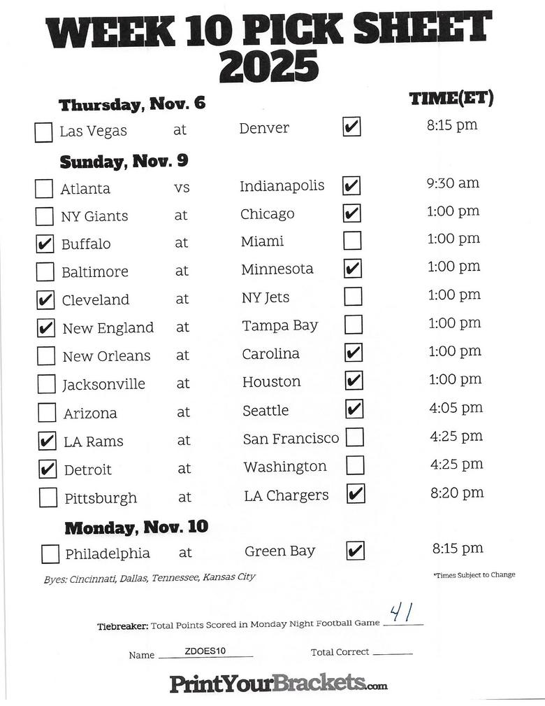 2025-2026 NFL Week 10 Picks and Discussion22061