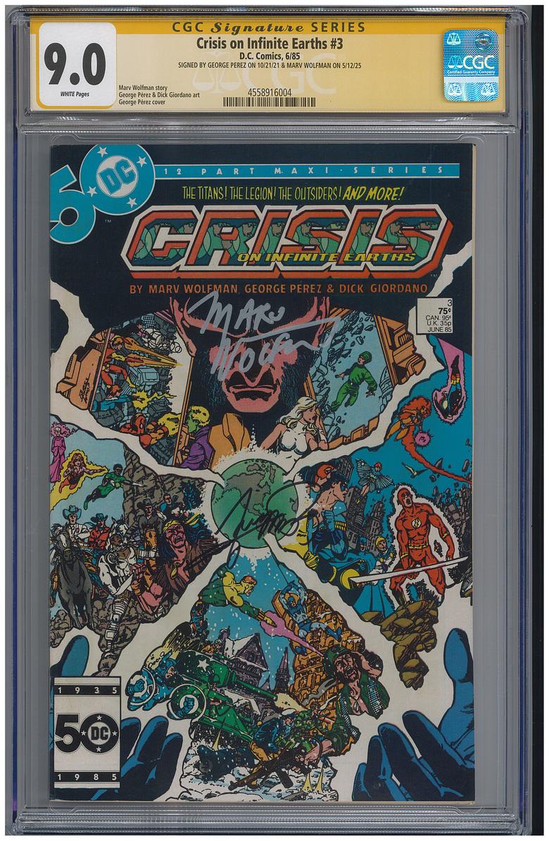 | CRISIS On Infinite Earths #3 CGC 9.0 SS Signed Marv Wolfman George Perez Flash https://ebay.us/m/Upxqh6 ![]() |