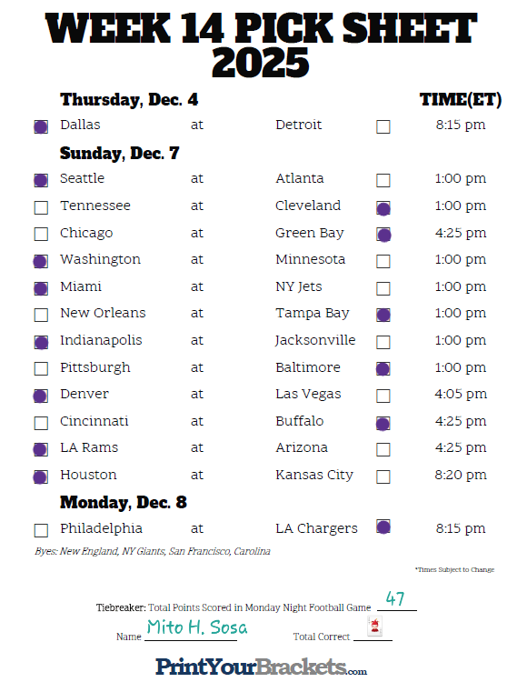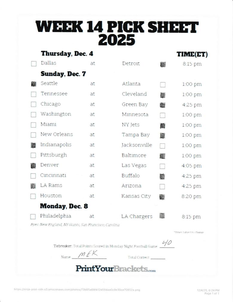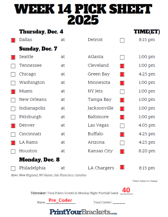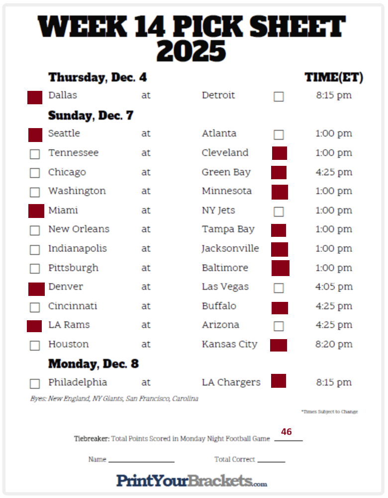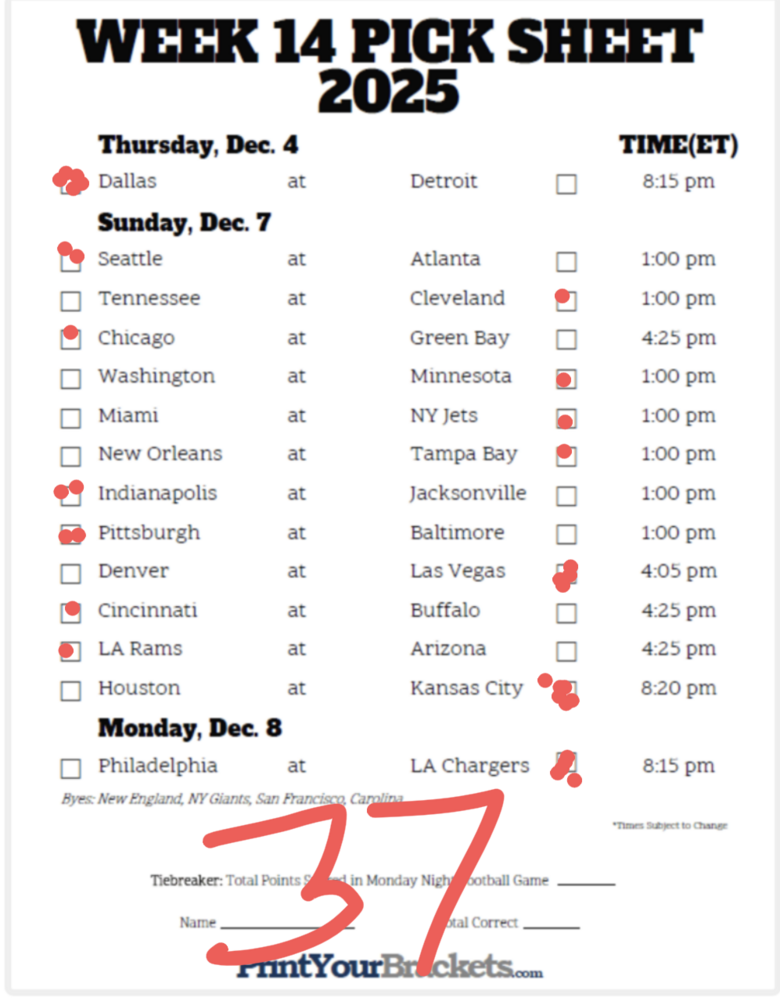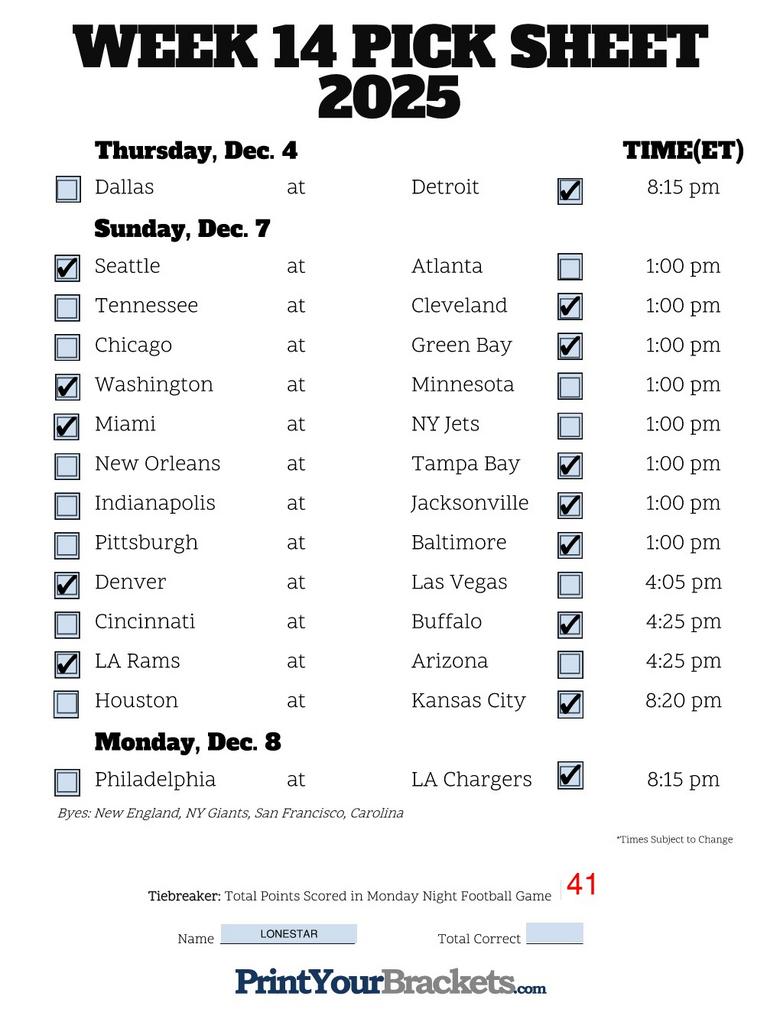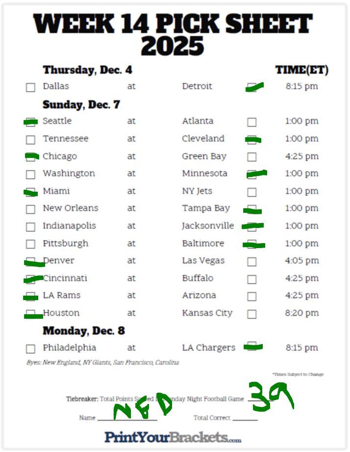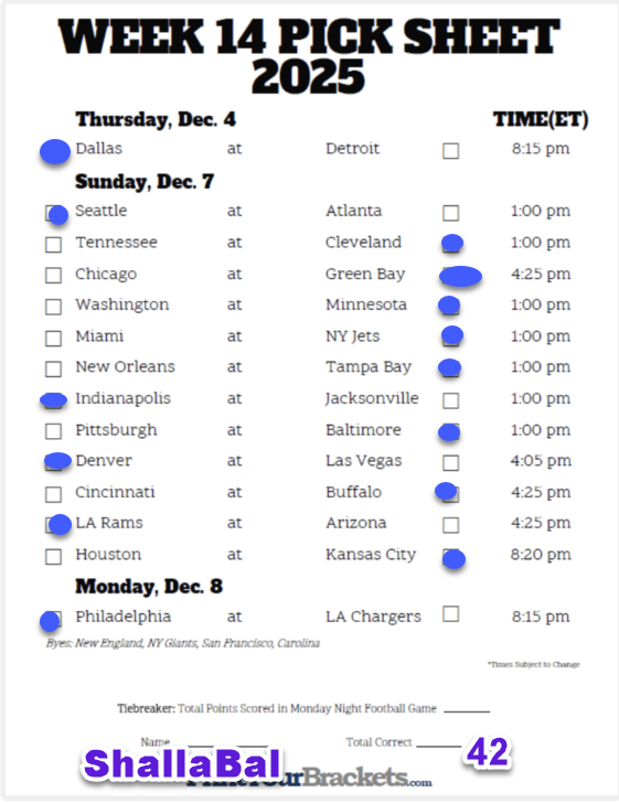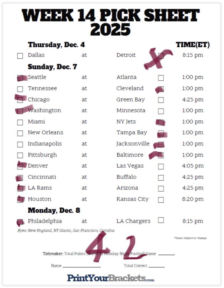 2025-2026 NFL Week 14 Picks and Discussion22105