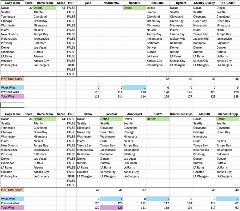 | The week is not decided yet, but @Pre_Coder and @Lonestar will take the overall into Week 15. | ||