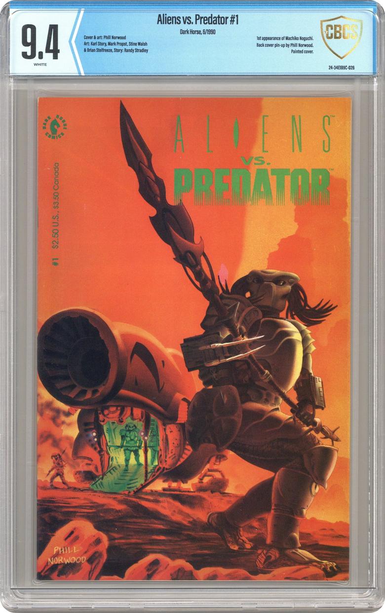 | Next up: The 1st issue of the Copper Age classic with painted cover from Dark Horse Comics, Aliens versus Predator #1 which also features the 1st Appearance of Machiko Noguchi. This one is a 9.4 grade with the new CBCS encasement and label. Current bid is currently at $16.00 ![]() Feel free to use this Direct Link for to view the high def rear photo and further details of the comic...and to place multiple excessive bids. Thank you for checking it out. |
