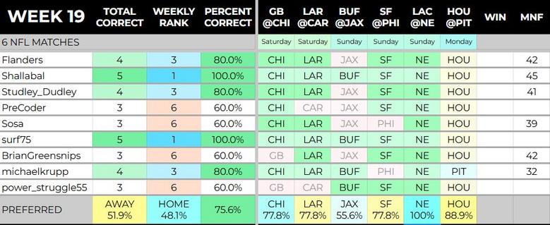 Rams and Bears tonight. I'll get the rest of the games tonight. Busy day.