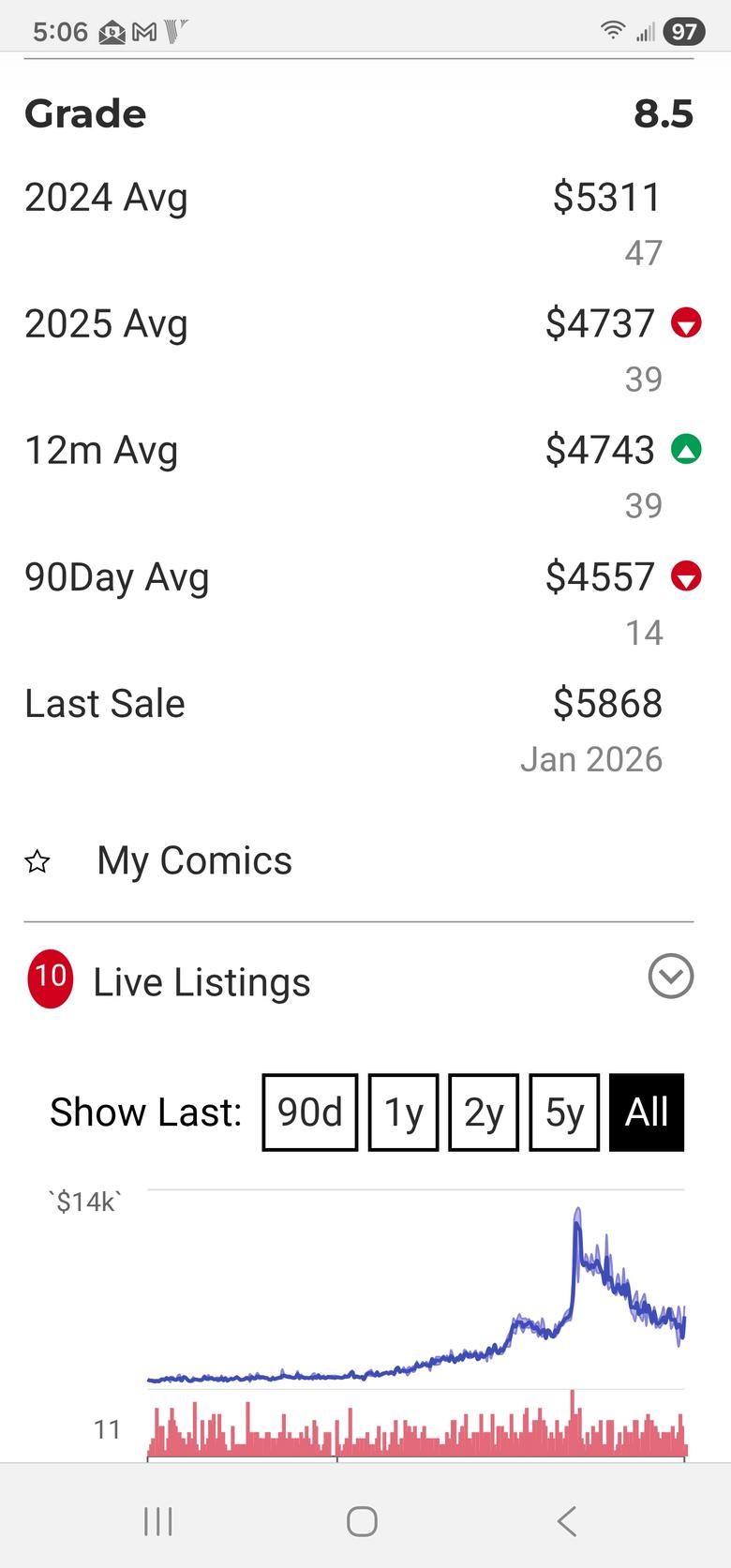 | I’ve notice that all cgc graded 8.5 Hulk 181 on eBay literally range from $10,999 down to $5300. I have eliminated the signature series or qualified just straight 8.5 graded books. So my question is, how can they have such a large range? I’m trying to learn here. It’s almost as though the highest prices are doubled from the lowest. Why is that? Is it as simple as some people are putting a “I don’t want to sell it” price? |