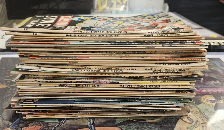 | Here is one of two stacks of books I picked up. I also was happy to pick up this high grade Godzilla #1. I also sold 2 of my prints today. Both Mike Kaluta with one that was a signed and numbered one. ![]() ![]() |