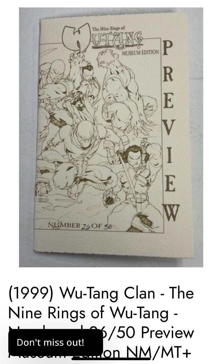 | The photo didn’t upload properly. Just fixed it. Looking for Nine Rings of Wu-tang Preview Museum Edition | ||