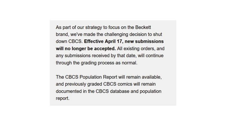 | Yea I think we all kind of saw the writing on the wall once CBCS and PSA became owned by the same company. It was only a matter of time. That's a real shame. I'm assuming the forum will disappear, too, or at least not get any traffic anymore. |