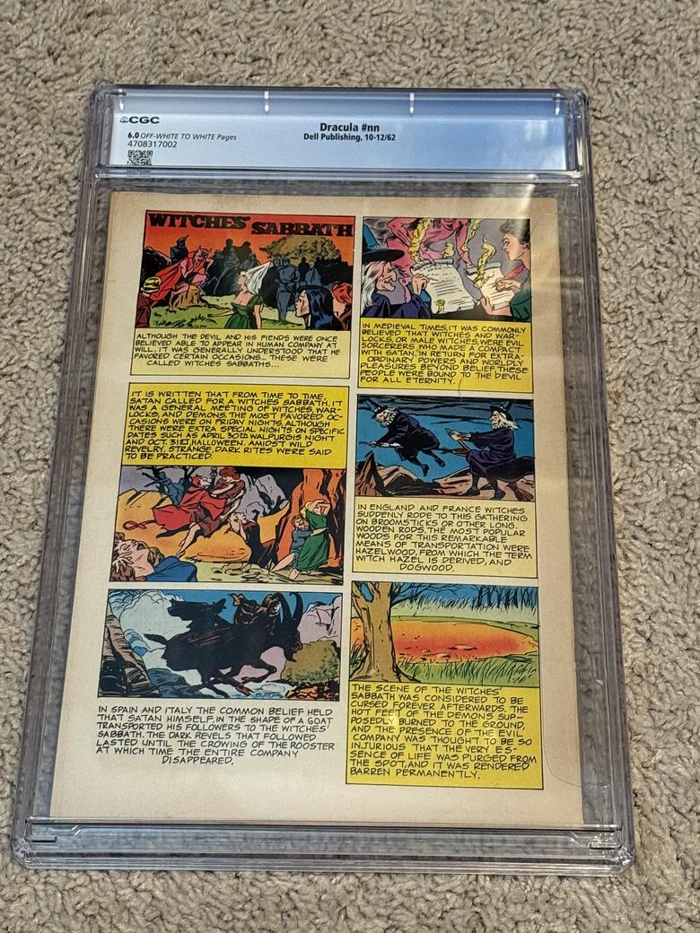 | I’m asking $225 shipped (PP G&S) within the continental U.S. I’d keep it, but I have another one in higher grade. I’d prefer no returns, but I’ll always work with you if there’s a complication. Alternatively, we can trade. I need a graded Dell movie Classic Frankenstein to complete the Universal Monster set. Got any earlier “X-Men” below issue #66? Got a few “Witching Hour” issues? I’m missing quite a few. That’s what comes to mind. Let me know if you’re interested. ![]() ![]() ![]() ![]() |