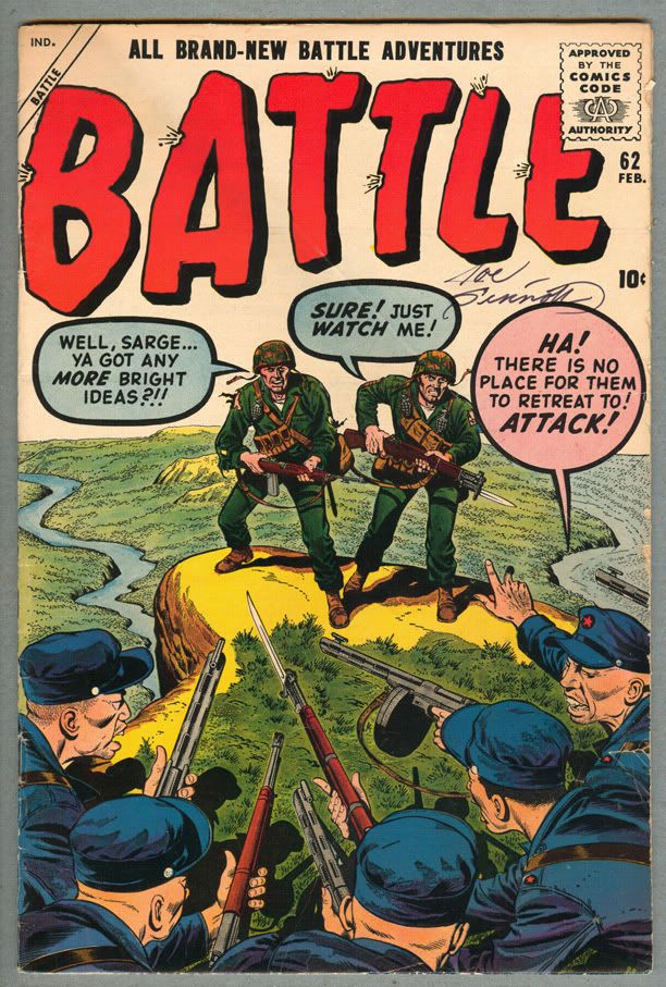 | This thread is intended for all of us to chat about and post pictures of silver age and atomic age war comics. I will contribute lots and lots in the upcoming days. Welcome everyone! |
