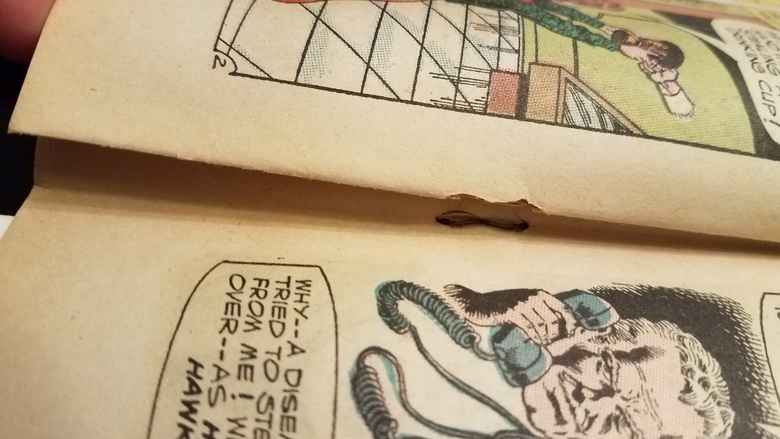 I have had terrible mailman luck and awful packaging from ebay sellers but I've never had to return a comic before. My streak of buying raw books for cheaper prices and not having any issues has come to an end. You all know my "Comics Im currently Chasing" thread that Hawkman #4 was #2 on my list. Seller advertised this copy as VG and complete with no pages missing or ads cut out. Unfortunately the seller didn't mention that the centerfold and page after are both detached from the bottom staple. That's a dealbreaker for me ![]() ![]() ![]() ![]() ![]() ![]() ![]() ![]() ![]() ![]() I |