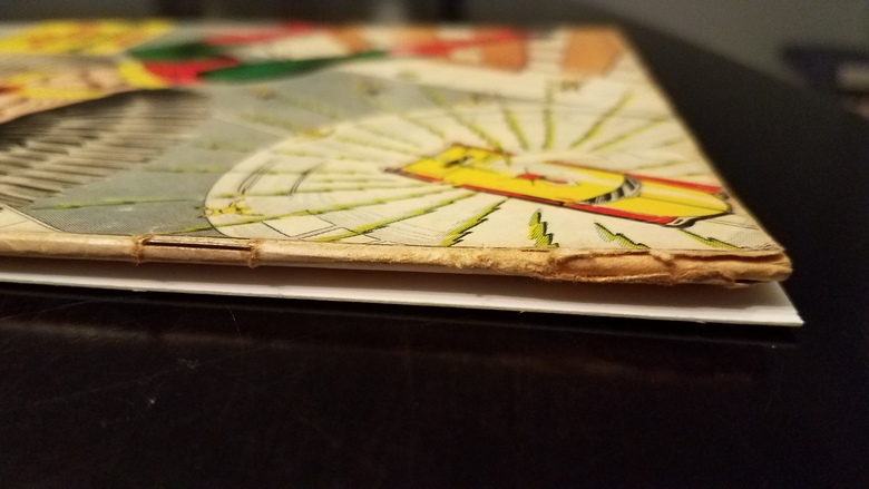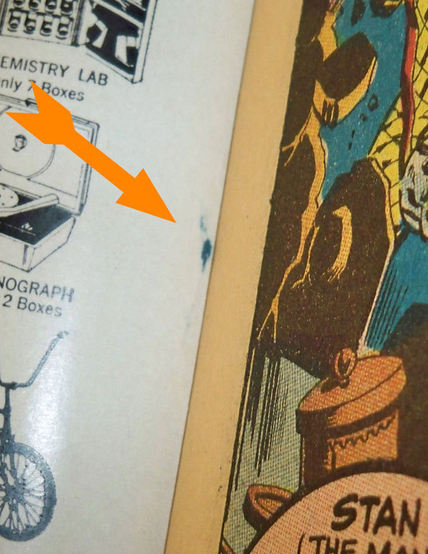 Here's an example of the tell-tale signs of color touch that has bled through the front cover, probably done with a Flair or Sharpie.![]() |
