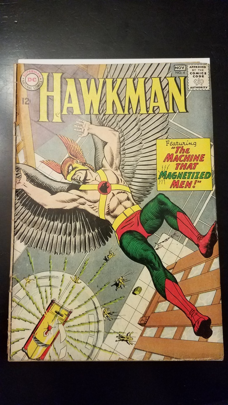 | hawkman 4 is a vg - a 3.5 centerfold detached at bottom spine is ok in a 4.0 grade. the spine split at the bottom knocks off .5 so 3.5 |